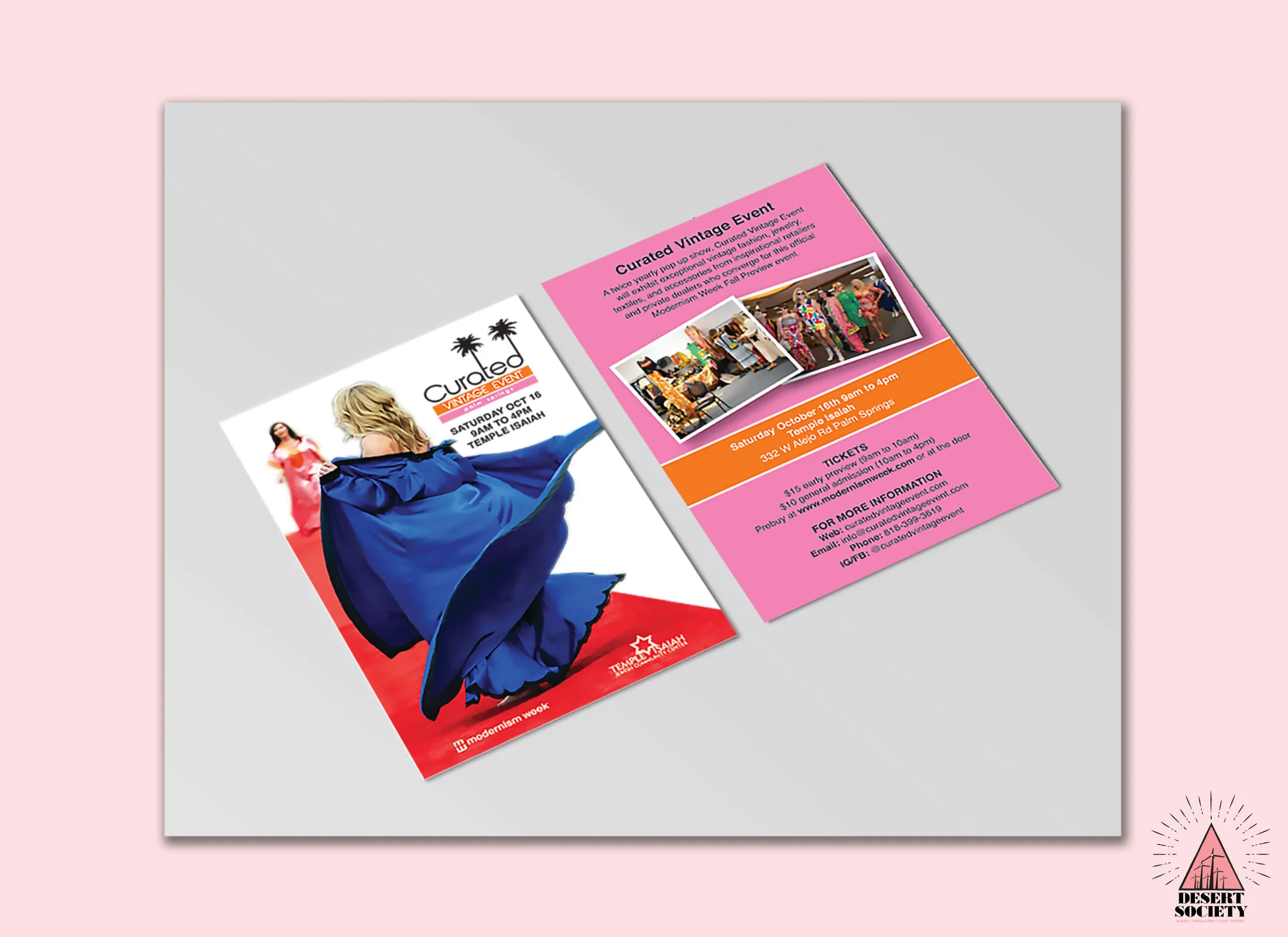 Desert Society then designed and built a website for the events to house the information we wrote the copy for, the links to book tickets, a gallery from the events as well as other key elements. We continue to create and design additional marketing collateral for Curated Vintage Event including posters, postcards and email newsletters, because superb design is always in fashion!